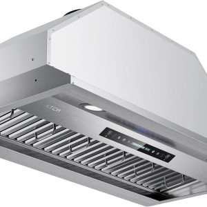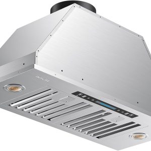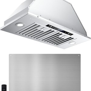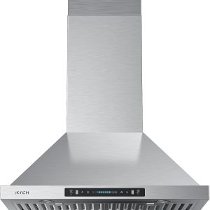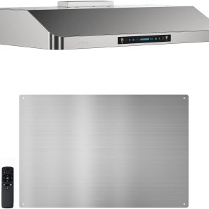 36 inch Black Wall Mount Range Hood, 900 CFM Ducted/Ductless Stainless Steel Vent Hood with Gesture Sensing & Touch Control Switch Panel